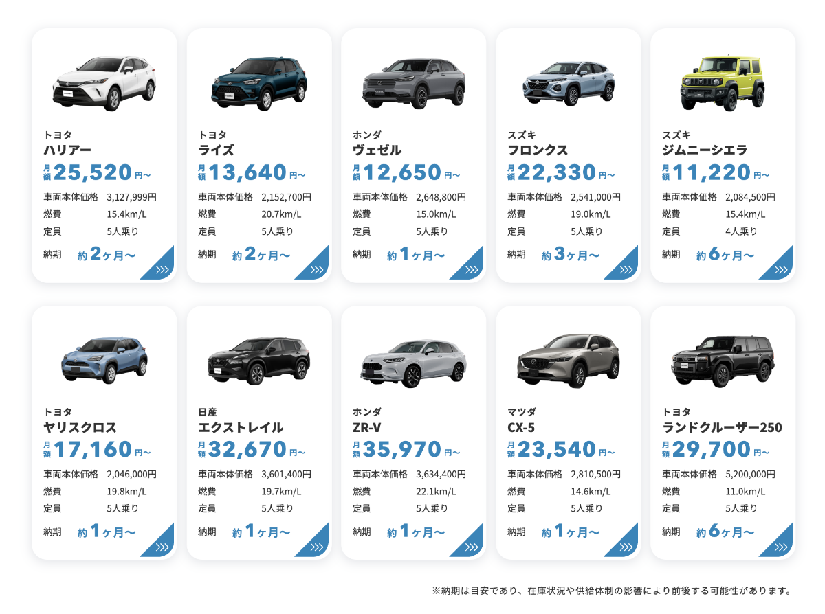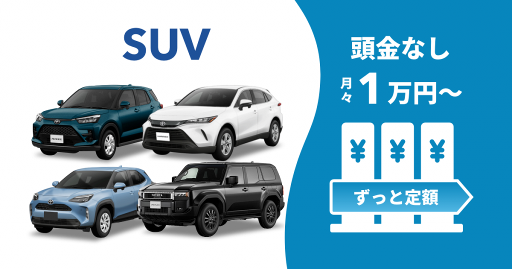 月々10,000円から、人気のSUVに新車でお乗りいただけます。