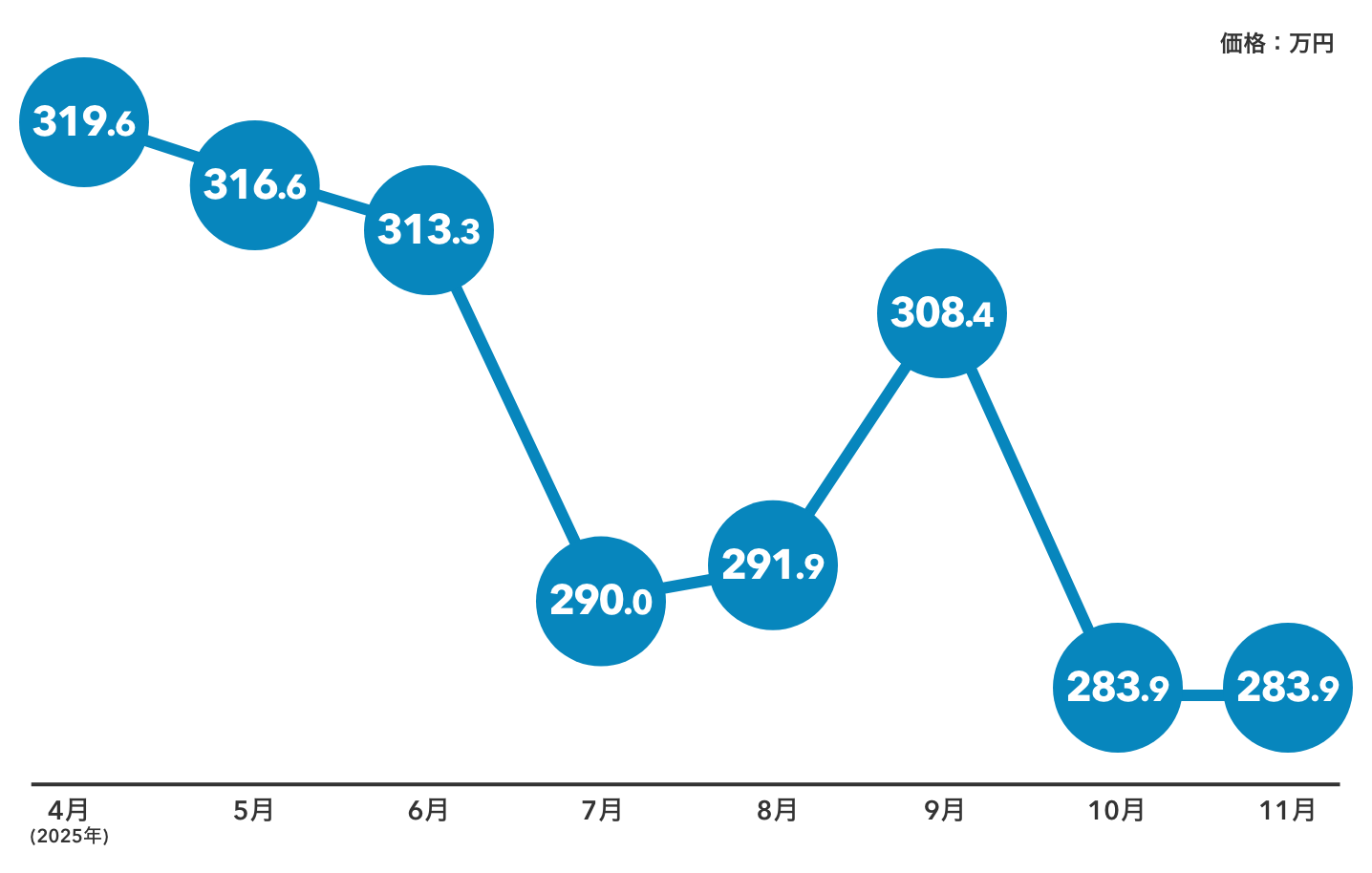 10月から11月にかけては価格が横ばいとなっており、市場全体としても落ち着いた動きが続いています。