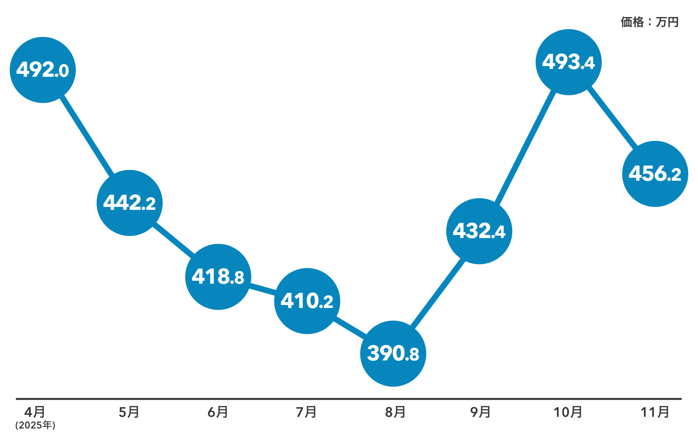 10月の上昇から11月はやや調整局面に入りましたが、依然として2025年春と同水準の価格帯に位置しています。