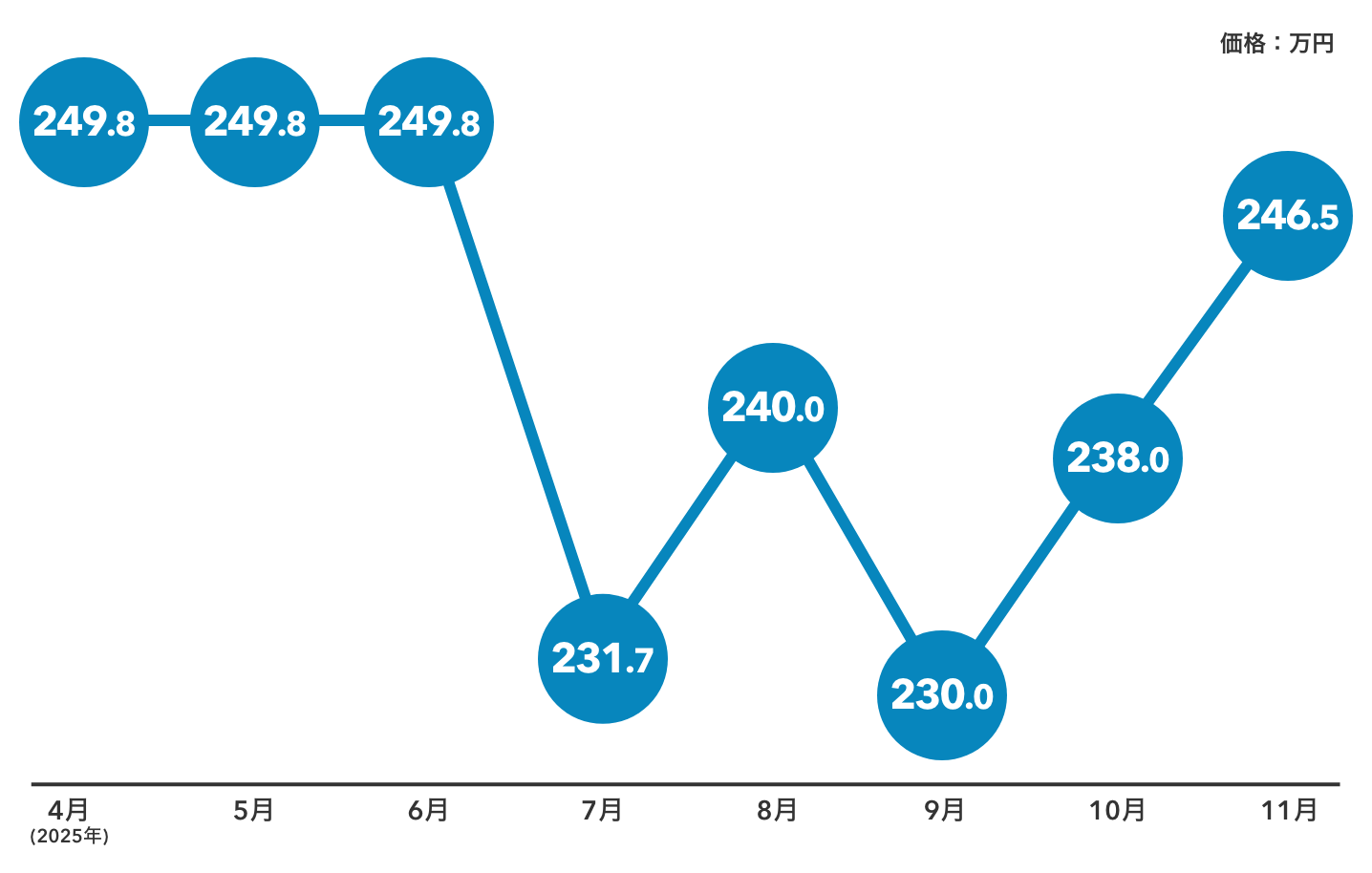 先月の238万円からやや上昇しており、堅調な相場推移を見せています。