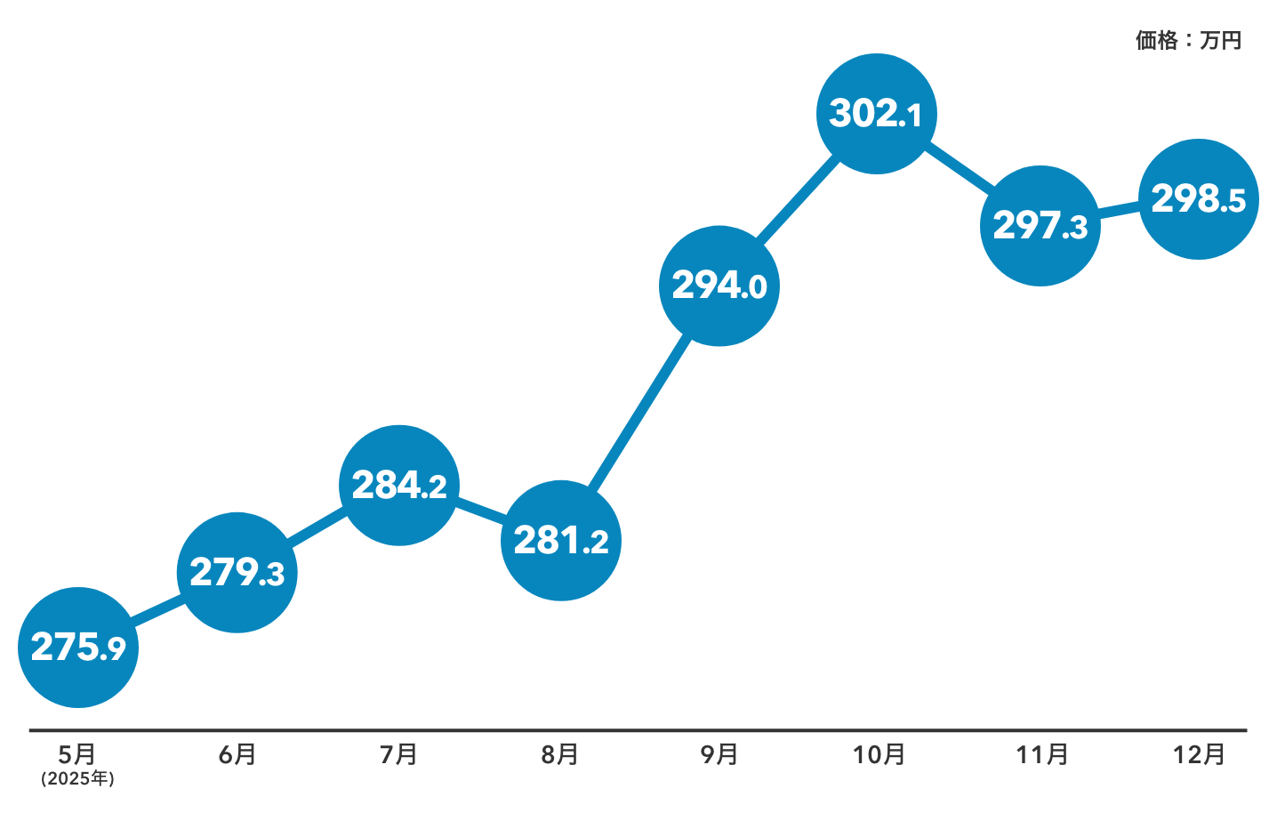 11月(297.3万円)から小幅に上昇し、高値圏を維持したまま年末を迎えました。