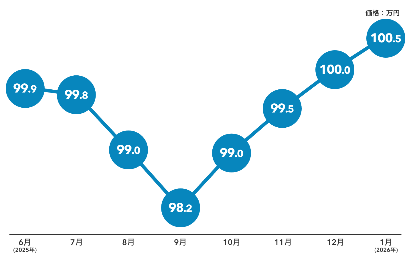 年末にかけては回復傾向が見られ、100万円台を回復しました。