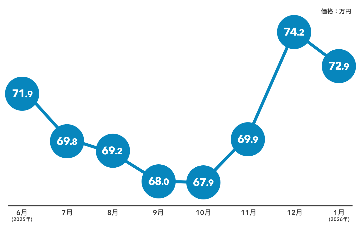 しかし11月以降は需要が回復し、12月には一時74万円台まで上昇しました。