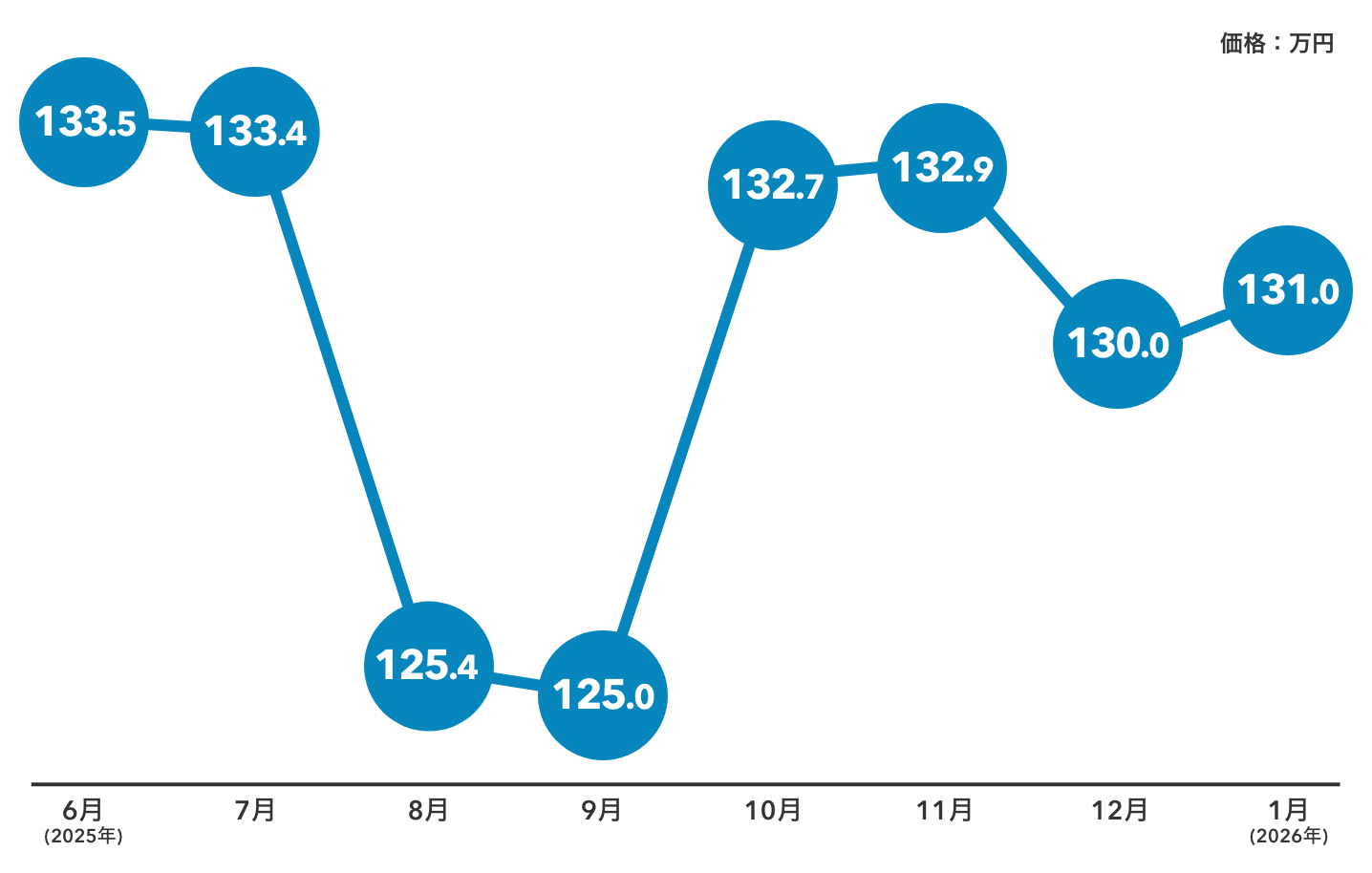 以下は、carsのAI査定データをもとにまとめた直近8か月間の相場推移です。