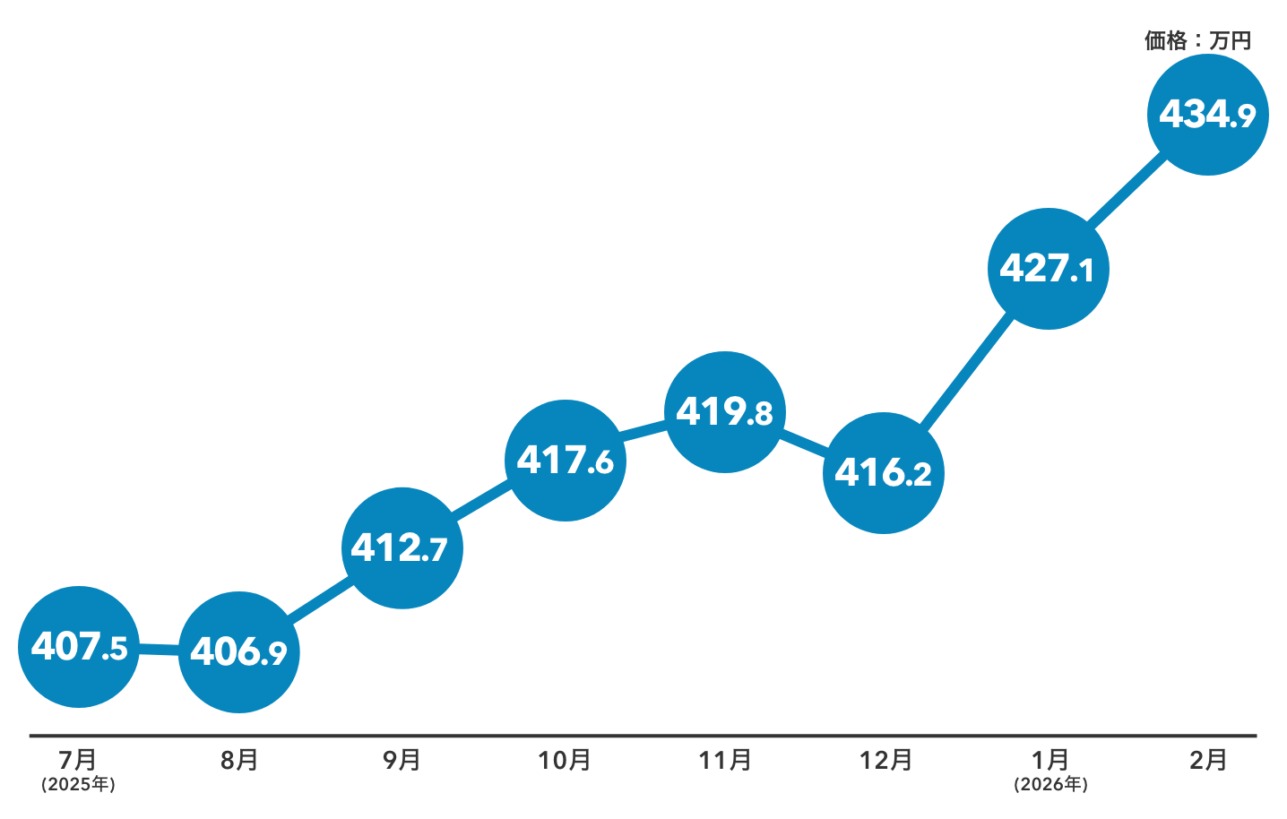 2025年夏時点では400万円前後で推移していましたが、秋以降は緩やかな上昇が続いています。