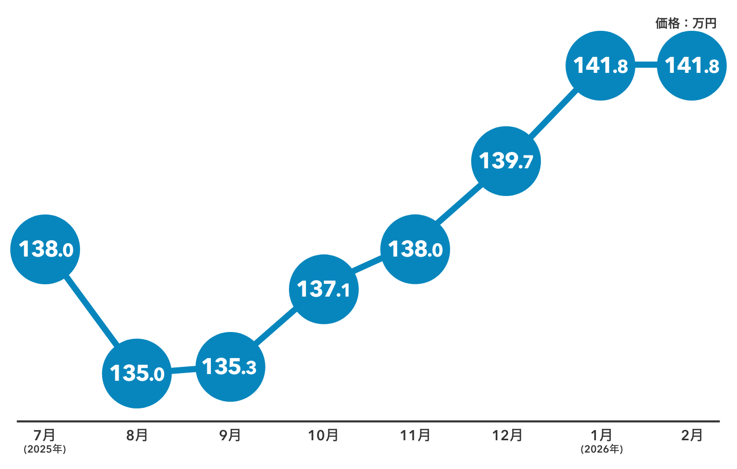 年末から年明けにかけては140万円台後半で安定し、大きな値崩れのない推移となっています。