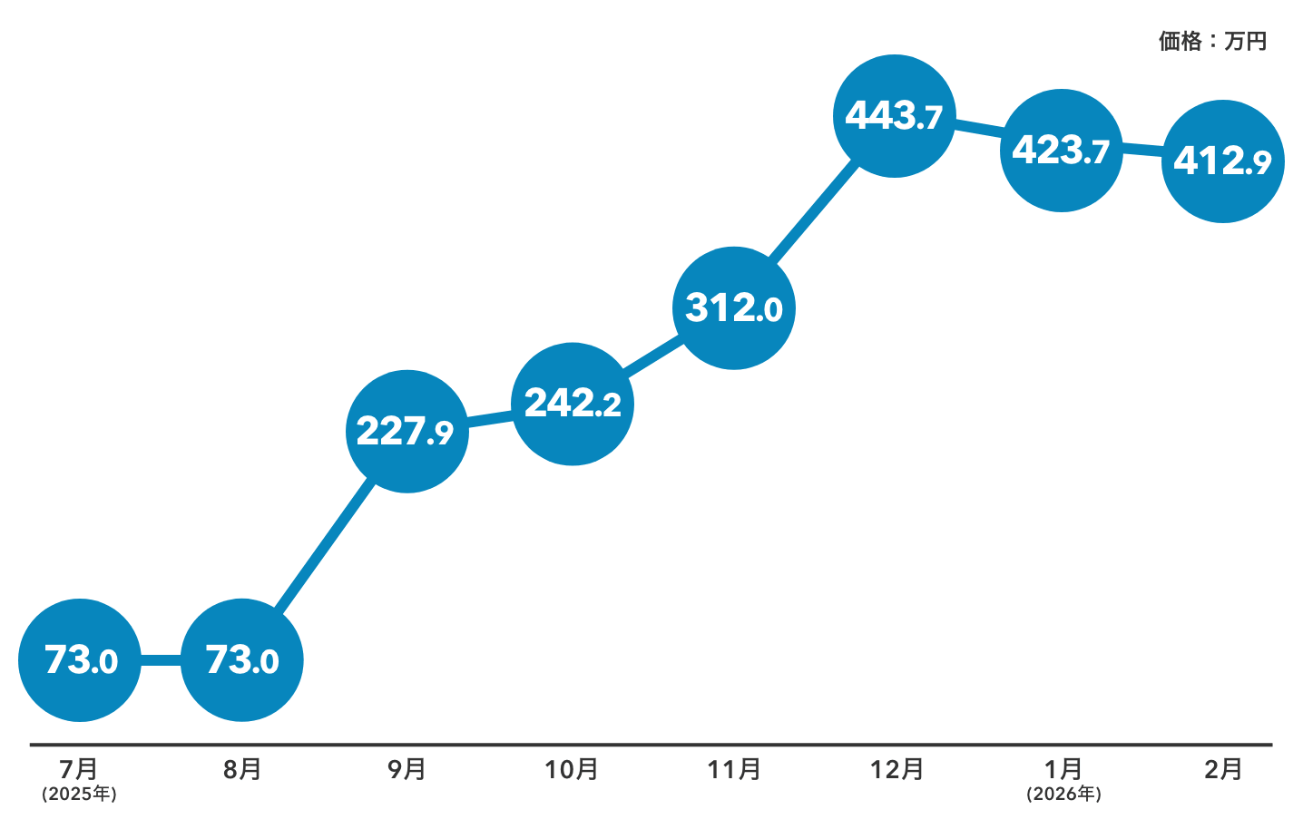 短期間で相場が大きく跳ね上がっている点が特徴的です。