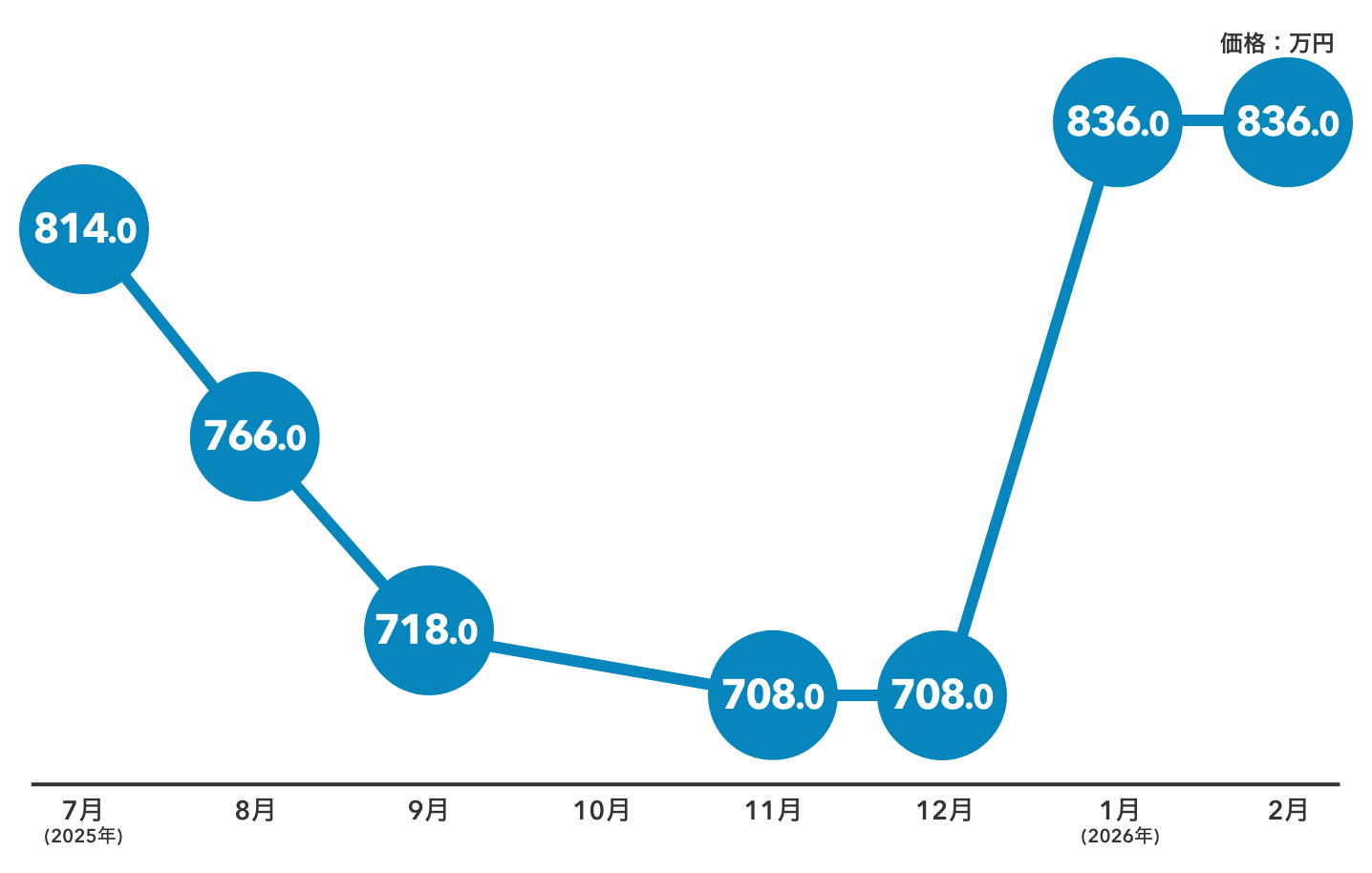 2026年1月に大幅上昇し、836万円水準まで回復しました。