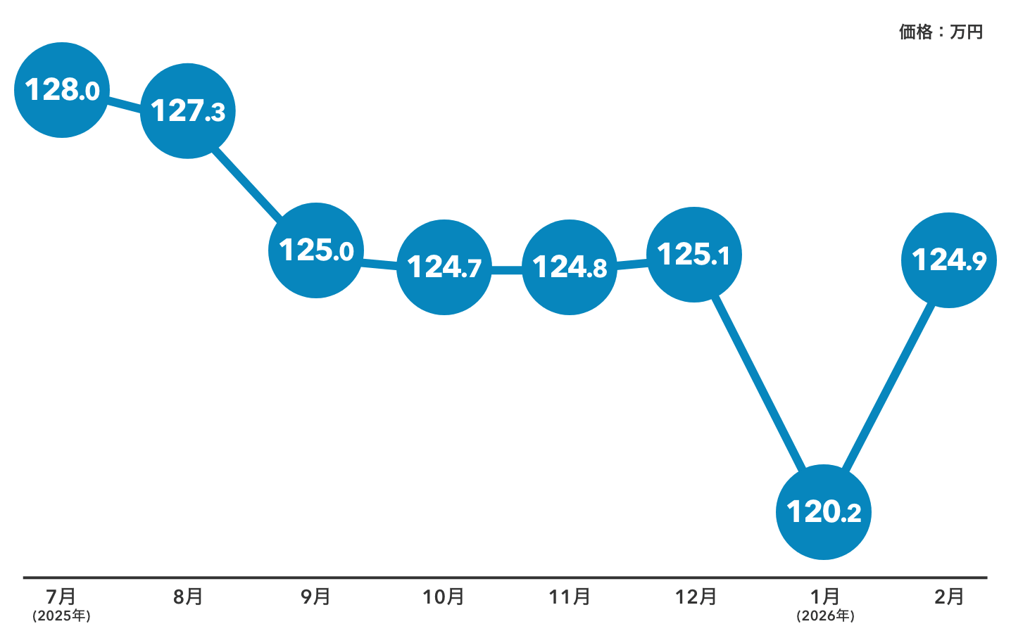 1月に約120万円まで落ち込みましたが、2月は約124万円まで回復しています。
