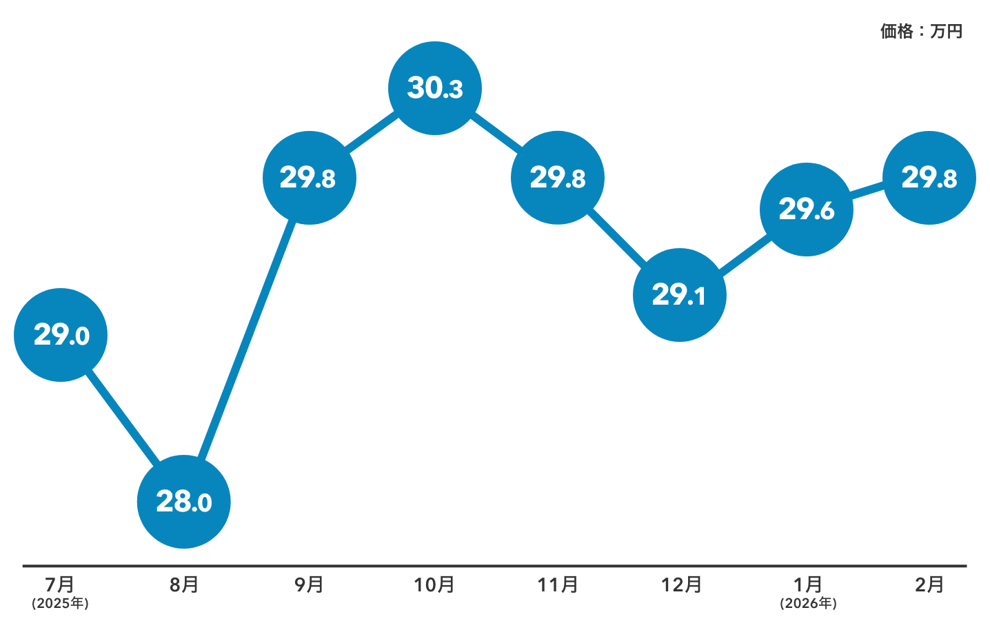 2025年後半は30万円前後で推移しており、