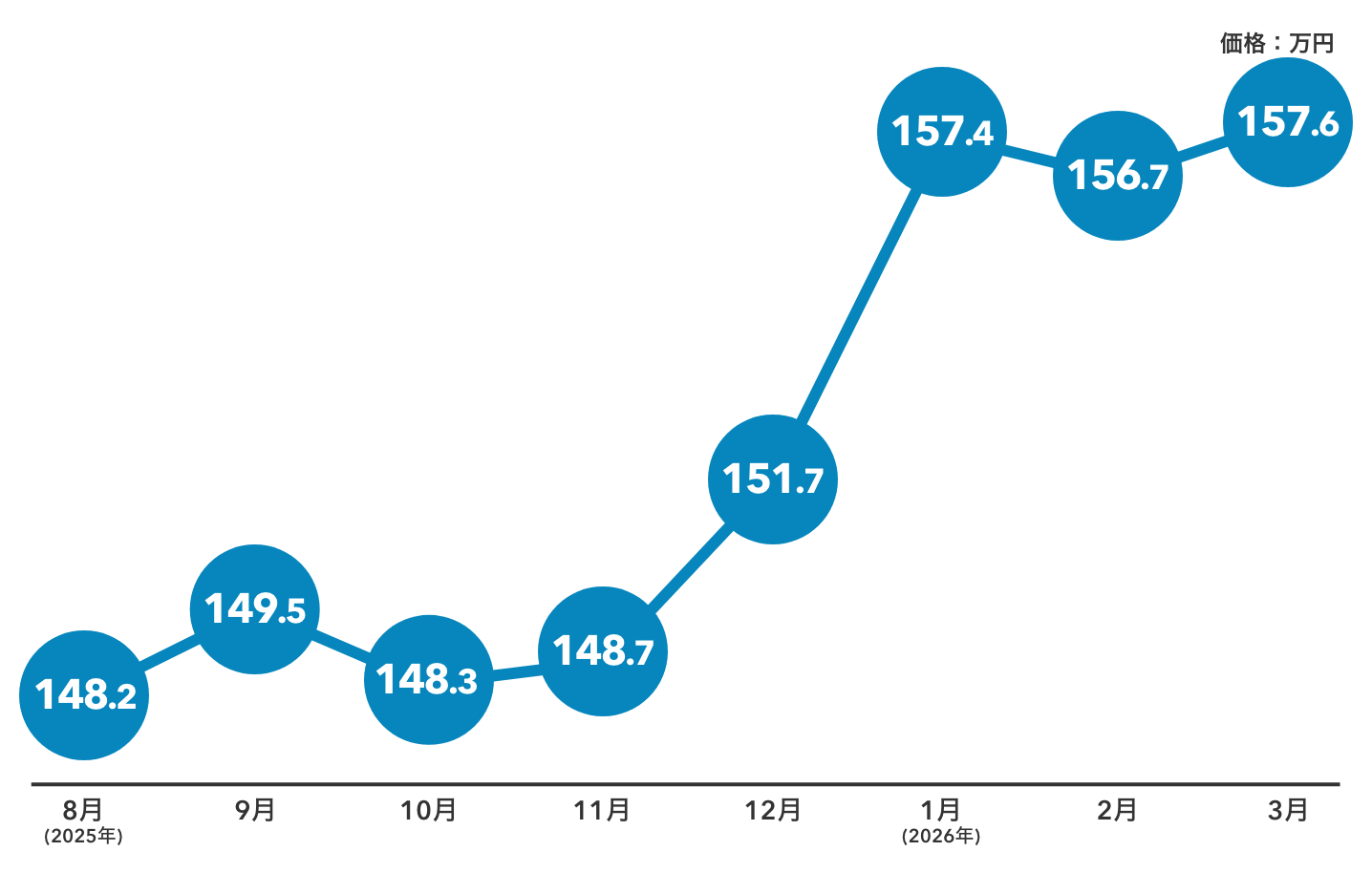 150万円台前半〜後半で推移しています。