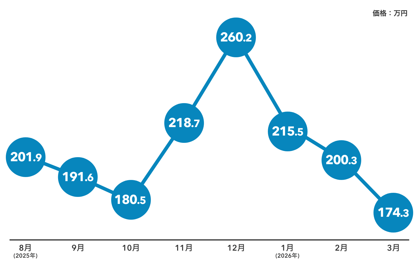 2025年10月には約180万円まで下落した後、