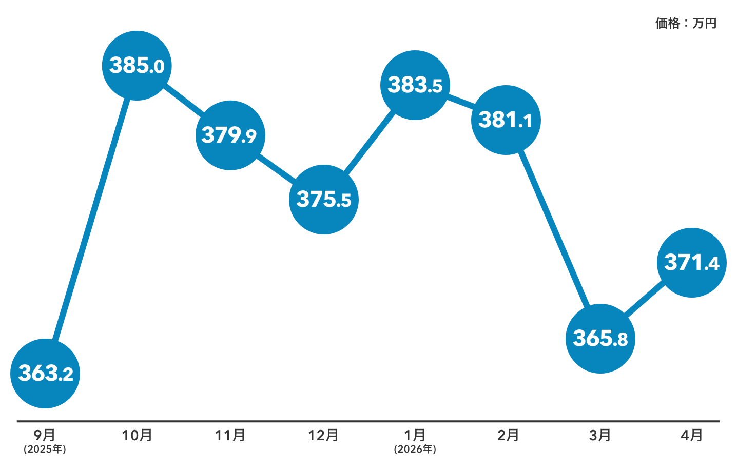 大きな上下は少なく、安定した価格帯で推移しているのが特徴です。