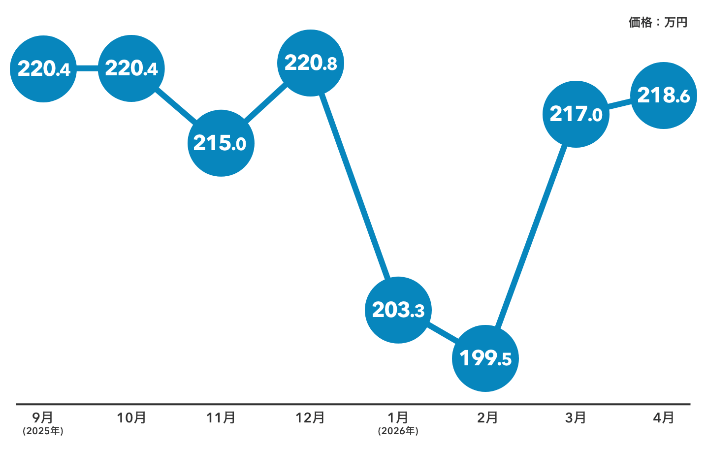 2025年後半は220万円前後で推移していました。