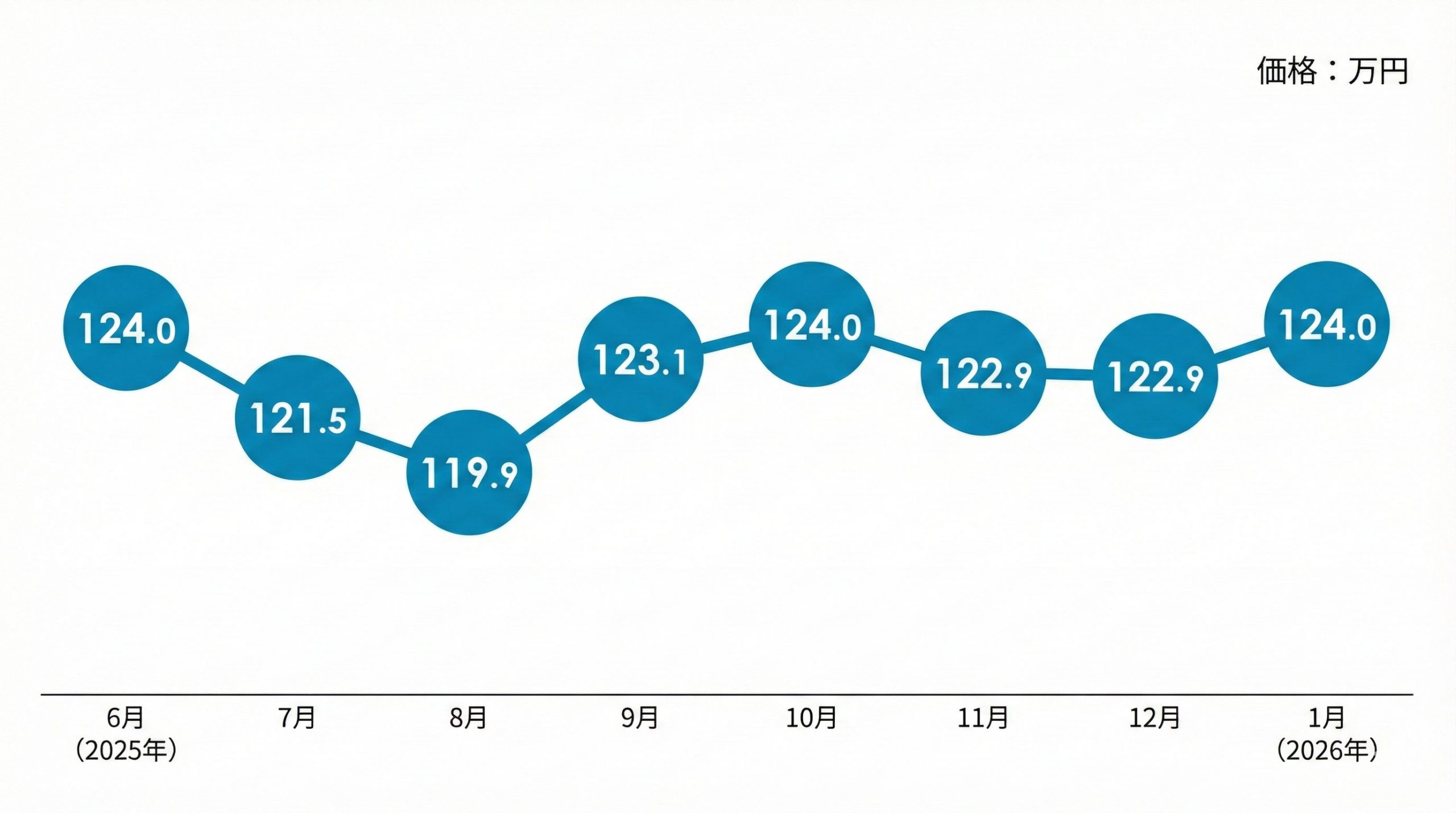 2026年1月に再び124.0万円まで上昇したことは、春の新生活に向けた需要の波を反映した結果と考えられます。