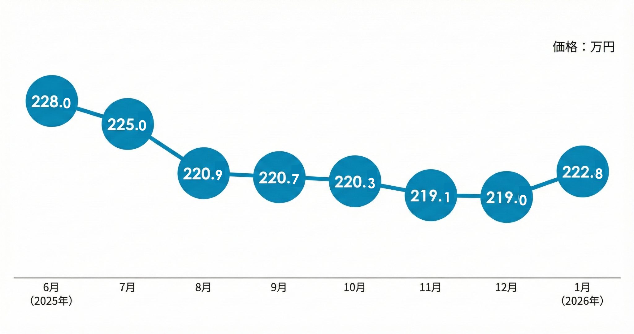 夏場以降は緩やかな下落傾向が続いていましたが、直近では持ち直しの動きが見られます。