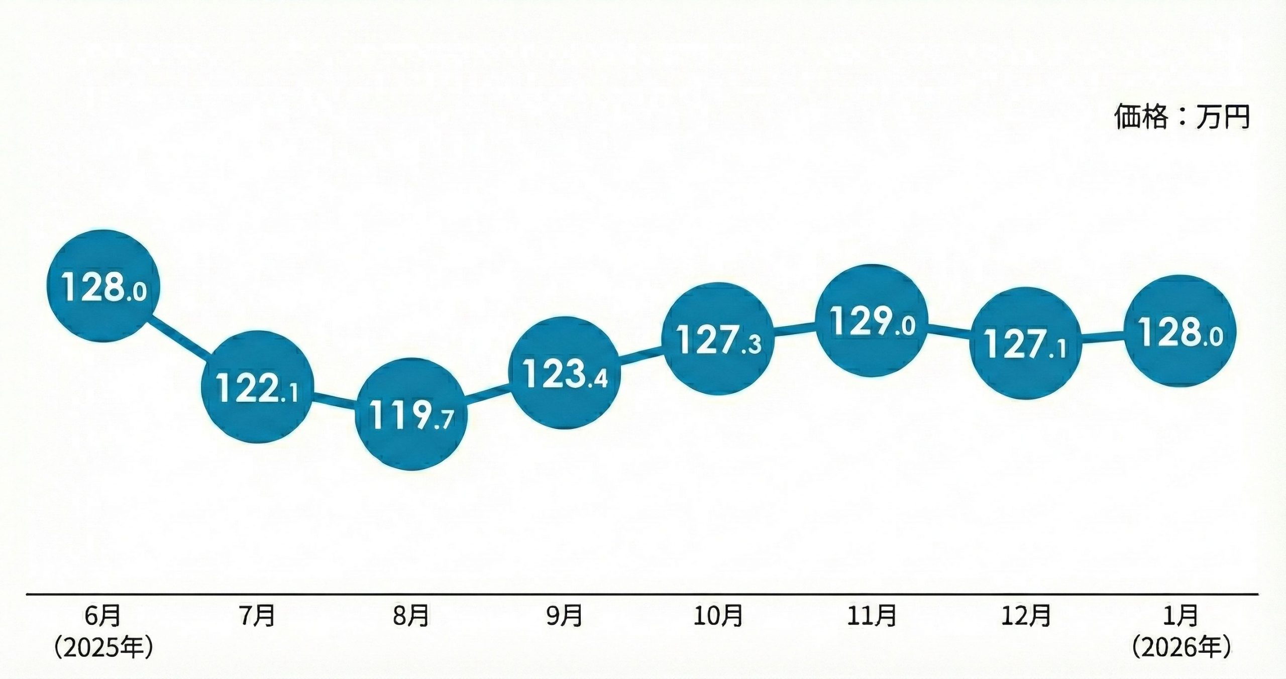 2026年1月は再び128万円台へ戻しており、底堅い相場が続いています。