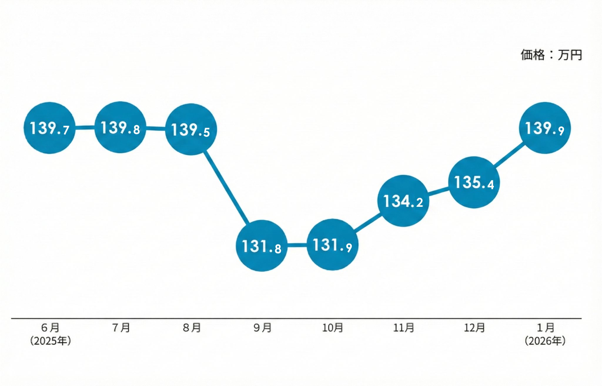 その後は10月以降に回復基調へ転じ、2026年1月は再び140万円台に戻す動きが見られました。