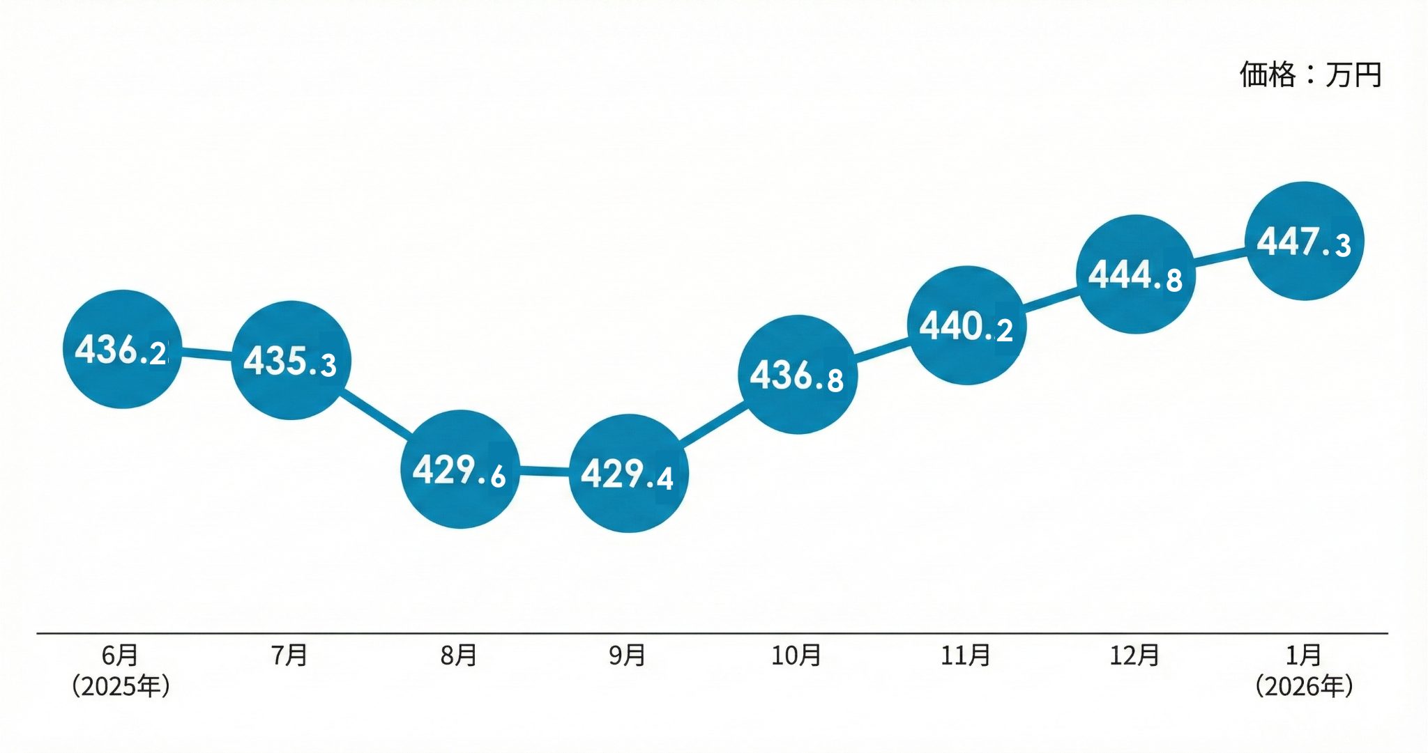昨年9月の429万円台からわずか4か月で18万円近くも相場が上昇した現在は、売却を検討している方にとって「最高の売り時」と言える状態です。