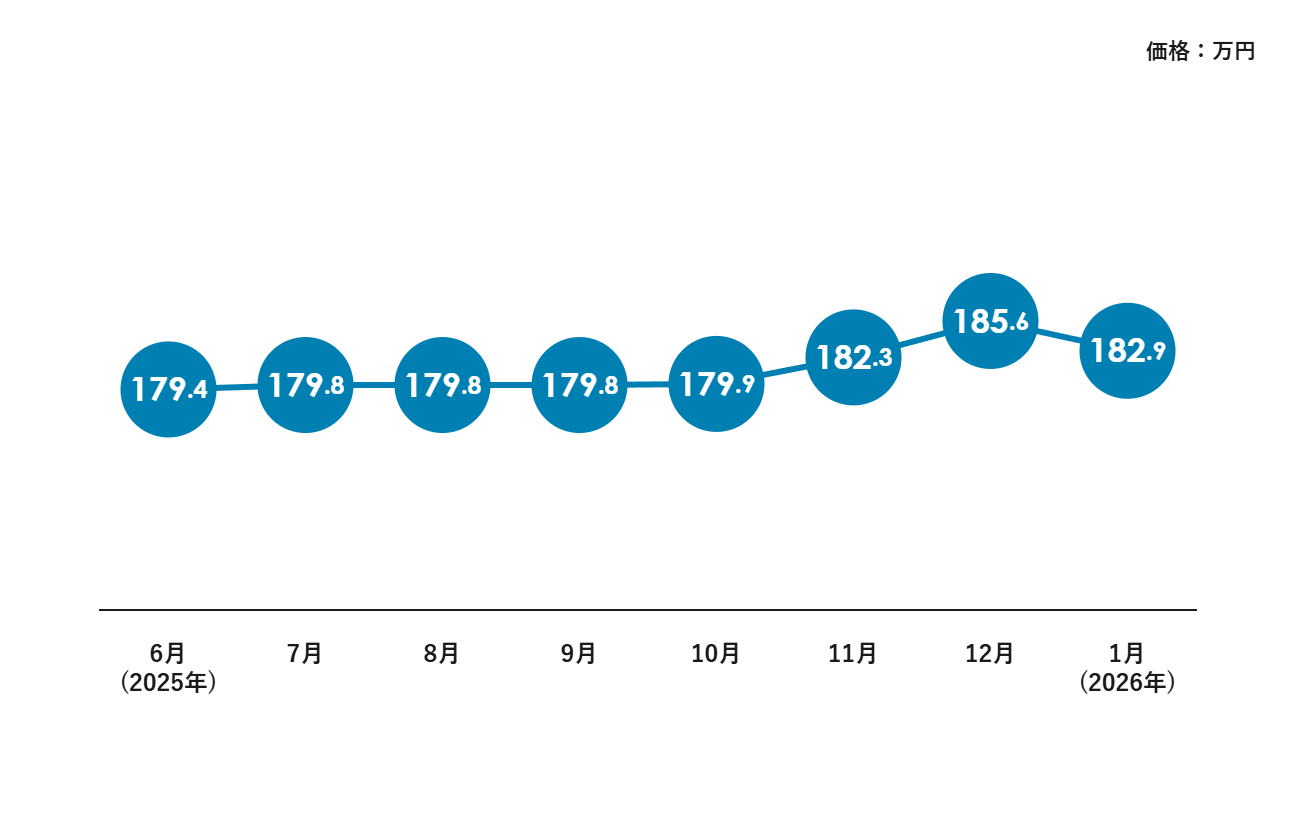 しかし、11月に182.3万円、12月には185.6万円まで上昇しており、年末の需要増加が相場を大きく押し上げたことが分かります。