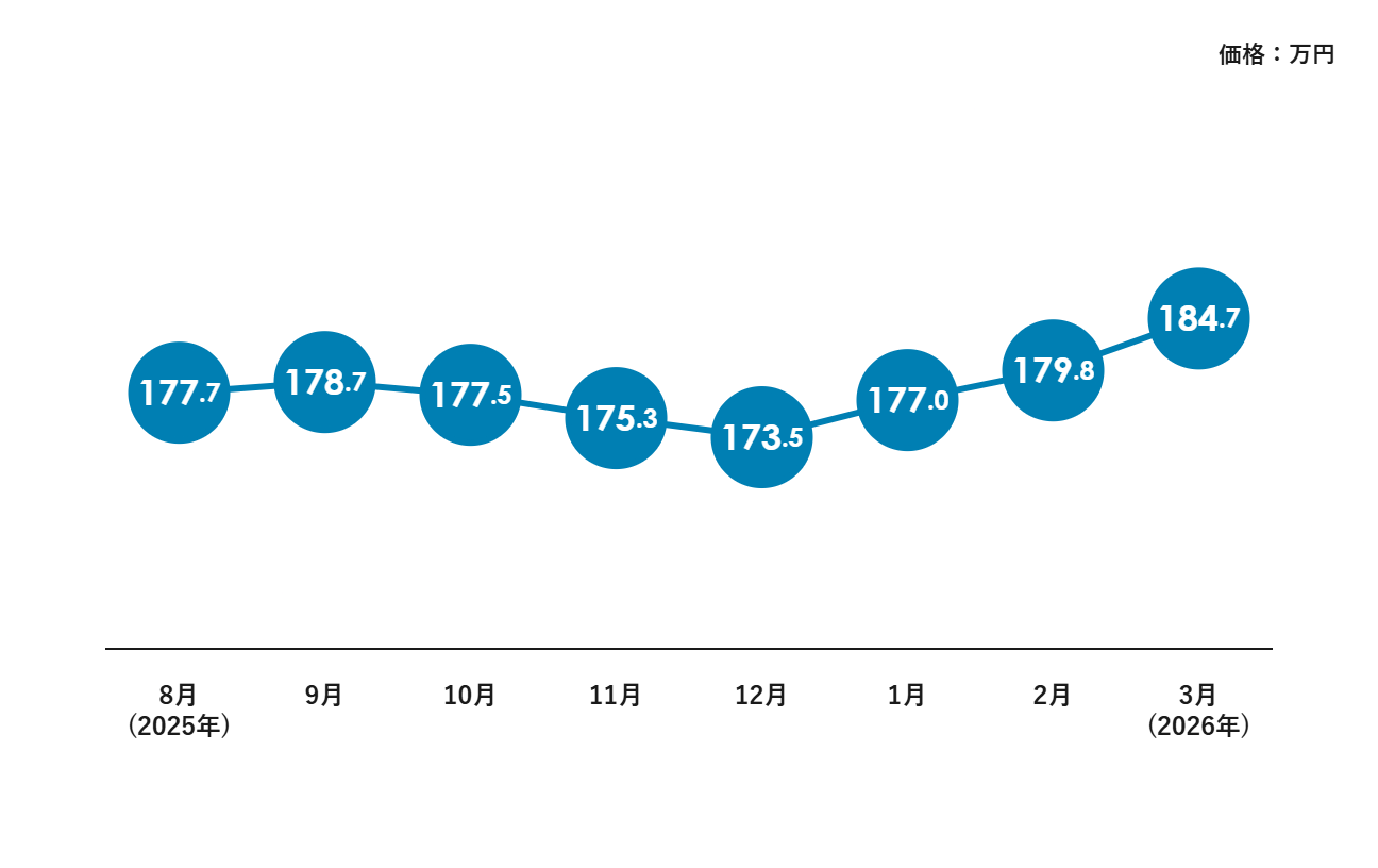 2026年2月には179万円、3月には184万円まで上昇しました。