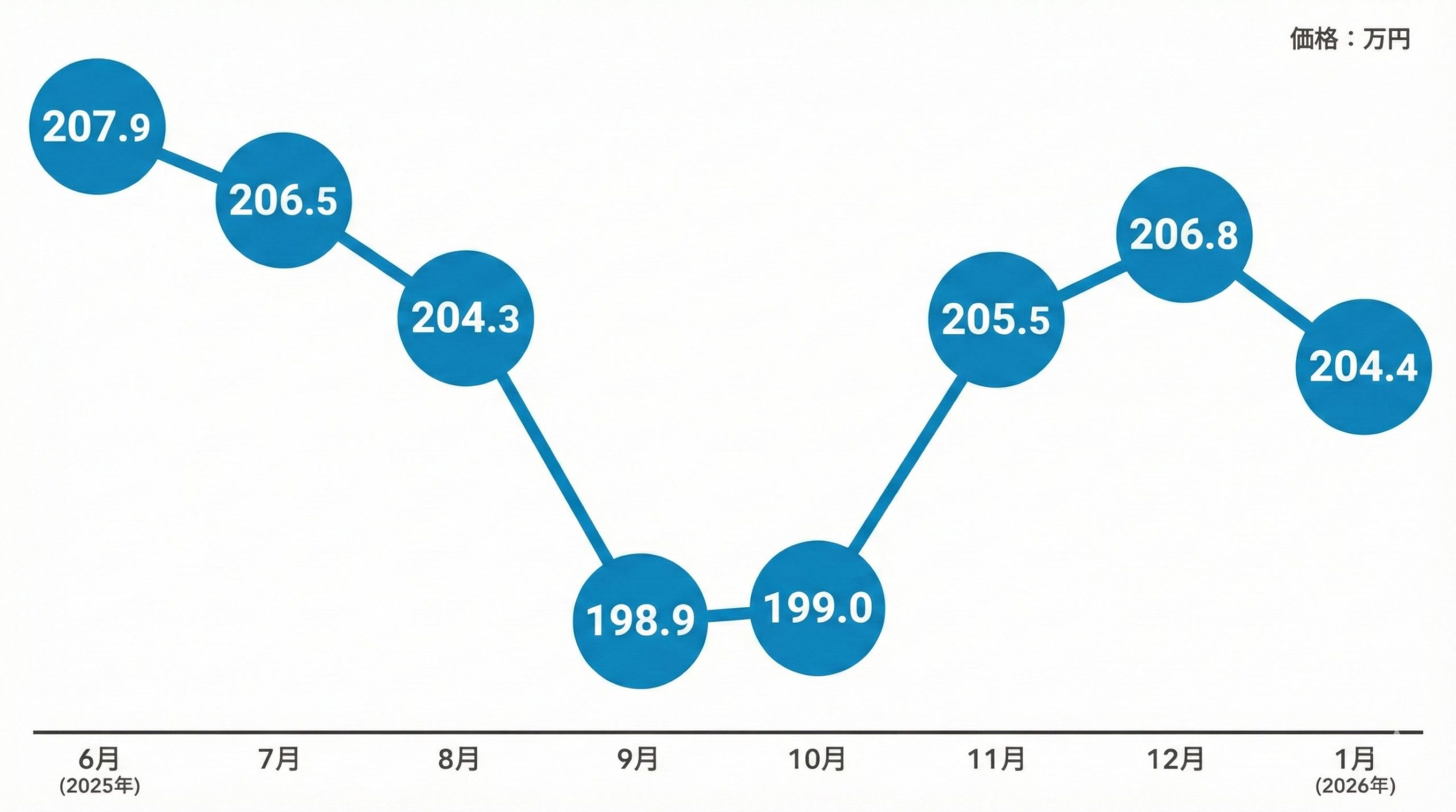 年末にかけては価格が持ち直し、200万円前後での安定感が見られます。