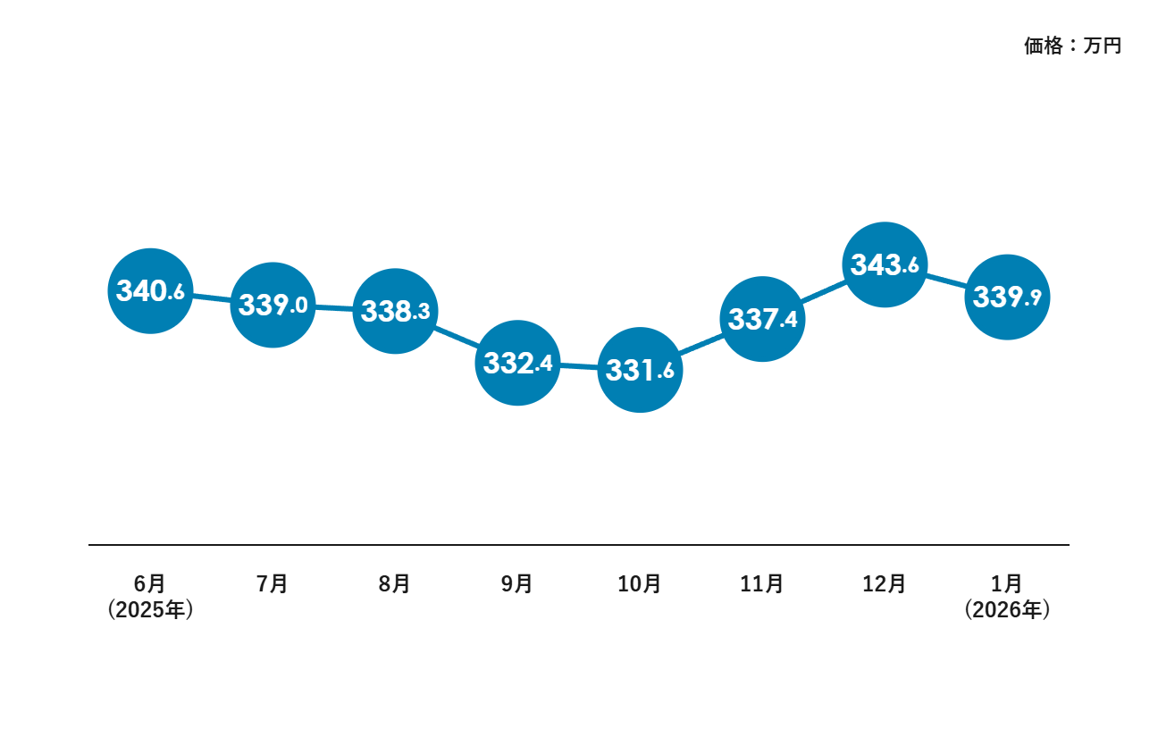しかし、12月に343.6万円まで上昇しており、年末の需要増加とボーナス商戦が重なったことが相場を大きく押し上げた要因と考えられます。