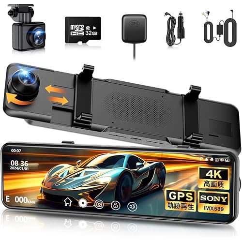 ドライブレコーダー ミラー型 4K【2026革新型&12インチIPS大画面&64GB SDカード】 ドライブレコーダー 前後カメラ GPS搭載 ドラレコ IMX589センサー ミラレコ 170度広角 タッチパネル HDR/WDR 全国LED信号機対策 地デジノイズ対策 IP67防水リアカメラ 操作簡単 日本語説明書付き
