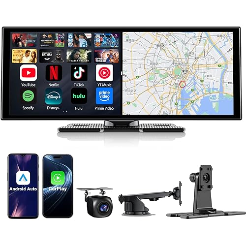 Accfly 11 インチプロフェッショナルディスプレイオーディオ 動画視聴対応(YouTube/Netflix Tiktok等アプリ)高清解像度 1920*720 デュアルスクリーン同期表示機能 ワイヤレスアンドロイドナビ(カーナビ)対応 ワイヤレス CarPlay 接続機能 背面カメラ対応、bluetooth通話音声コントロール、AUX/FM、インストール容易、技術認証取得済みです