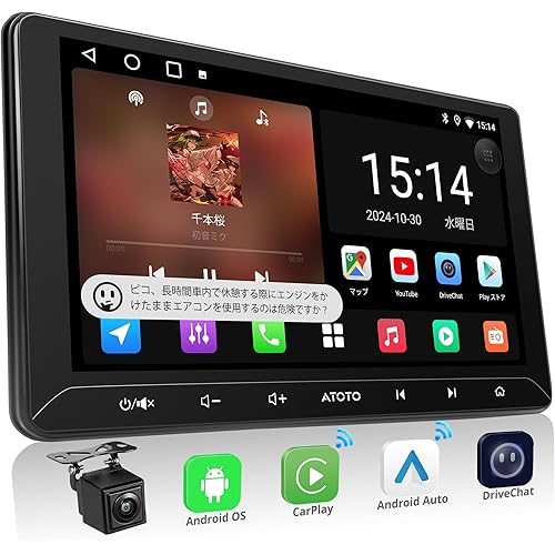 ATOTOLIFE A5L 10インチ Androidナビ 2DINディスプレイオーディオ、大画面アンドロイドカーナビ、無線Android Auto&CarPlay ワイヤレス、WiFi 対応/USBテザリング、24バンドEQ DSP 内蔵、バックカメラ、ミラーリンク、FM/AM、Bluetooth音樂・通話、AI連続会話&GPS追跡、2G+32G、USB/TF動画再生
