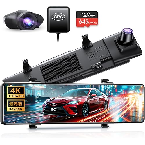 ドライブレコーダー ミラー型 前後カメラ 【2025進級版&4K 4KHD画質&64GB SDカード】 12インチ超大画面 ドラレコ タッチパネル式 伸縮式フロントカメラ ミラレコ 右ハンドル日本車対応 GPS搭載 高感度IMX589センサー 170°広角 超鮮明夜間撮影 バックガイドライン 24時間駐車監視 地デジ干渉対策 IP67防水リアカメラ 日本語説明書